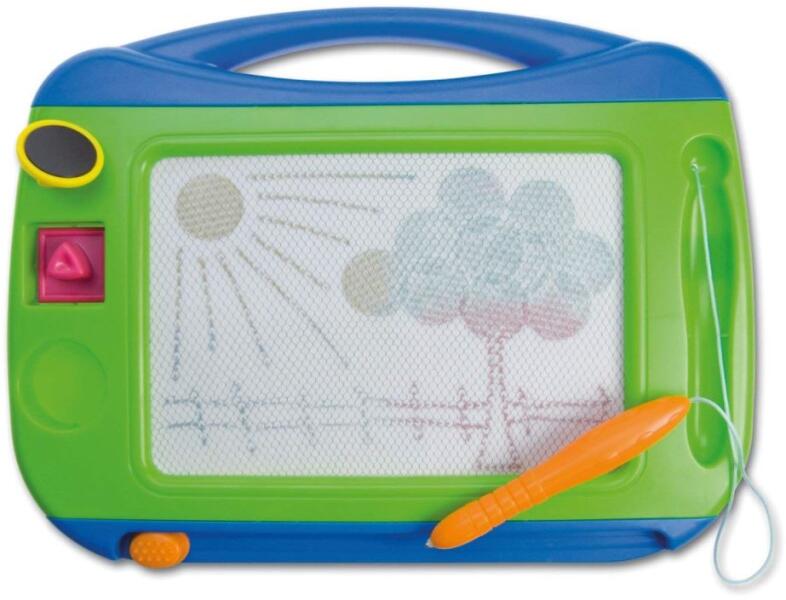 Tulajdonságok:Gondolkodtál már azon, milyen lehet egy olyan rajztábla, amin újra és újra rajzolhatsz, minden további nélkül? Most kipróbálhatod ezzel a csodás rajztáblával, ugyanis a mágneses alapon működő táblára rajzolt dolgokat egy mozdulattal eltüntetheted. A tábla egy fém hegyű tollal működik, és ha elkezdesz rajzolni, észreveheted, hogy a tábla más-más részei különböző színű. Így a rajzod még szebb lehet. Két bélyegzővel az egész felületet kiszínezheted, vagy bele építheted a rajzaidba a mintájukat. Jellemzők:A csomagolás mérete: 32 x 25 x 3 cm Neme Lányok és Fiúk számára Korosztály 3 éves kortól