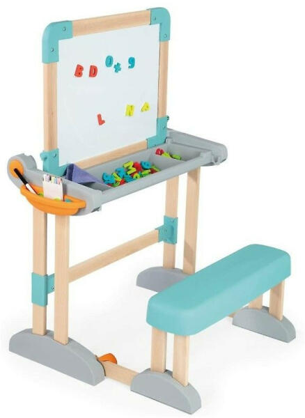 Ez a Smoby többfunkciós rajzasztal könnyedén átalakítható íróasztalból függőleges rajztáblává, így sokoldalú teret biztosít a kreatív alkotáshoz. A kétoldalas táblának és a 80 darabos kiegészítő készletnek köszönhetően fejleszti a kézügyességet és játékosan készít fel az iskolára.